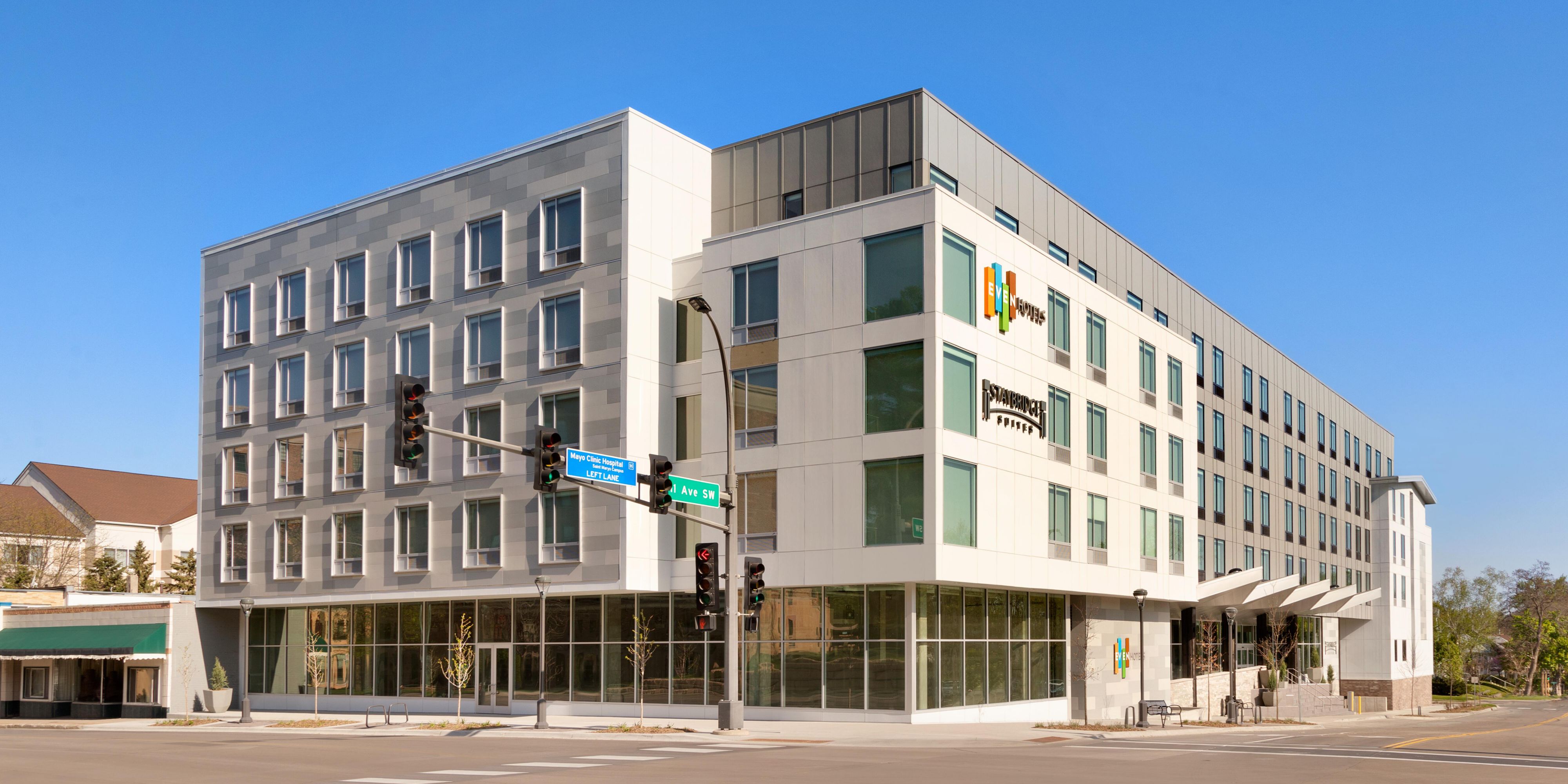 The Staybridge Suites Rochester-Mayo Clinic Area is the newest IHG hotel in Rochester, MN, located directly across from Saint Mary's Hospital and just a short stroll from local dining and coffee shops.
