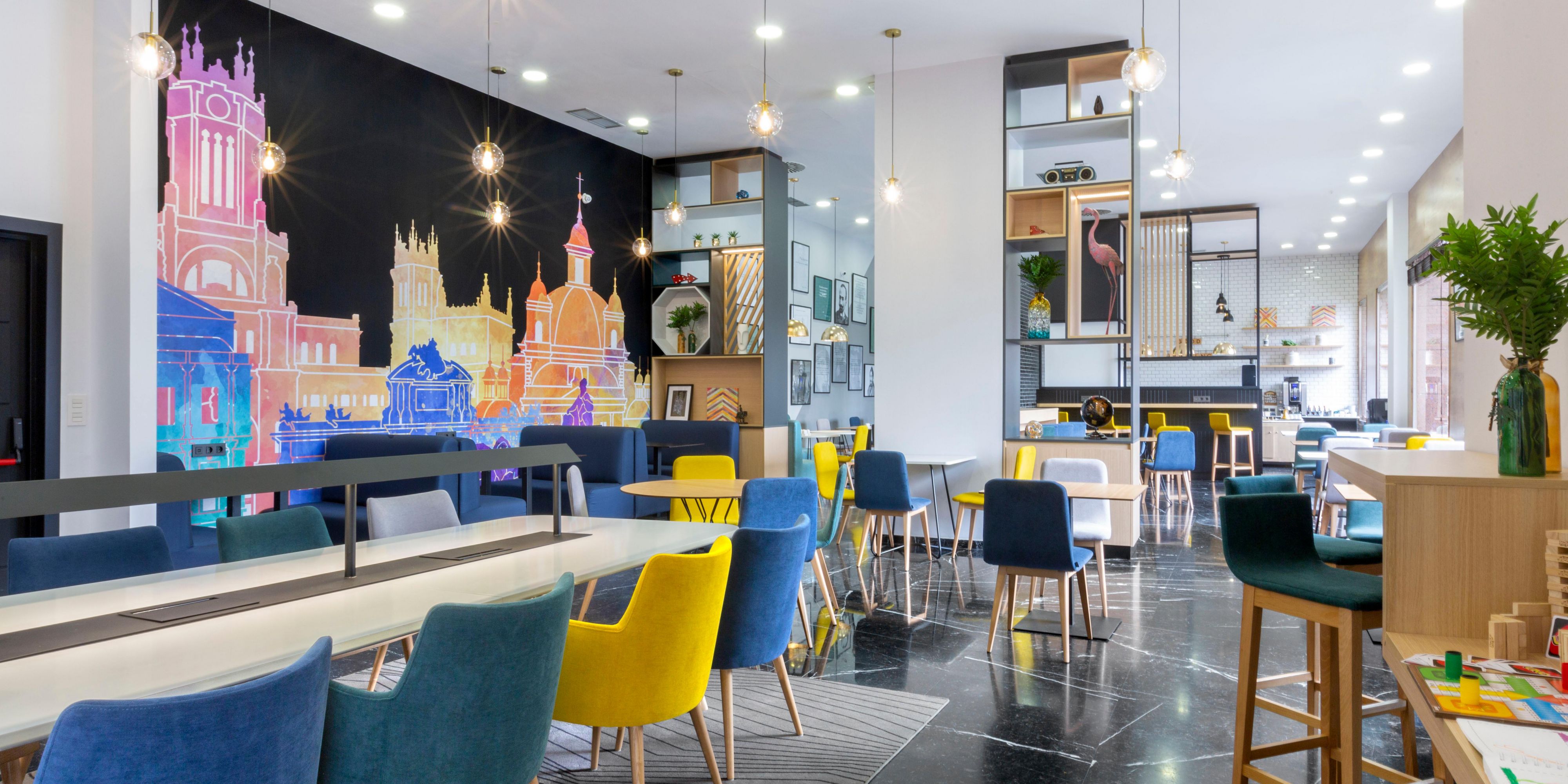 قام فندق فوكو™ مدريد - Las Tablas ببار اللوبي الترحيبي المجدَد حديثًا: وهو المكان المثالي للاسترخاء أو الترفيه عن هذا العميل المهم أو الاجتماع لتناول الكوكتيلات المسائية. استمتع بمجموعة كبيرة من المشروبات المنعشة والوجبات الخفيفة بعد يوم حافل بالعمل واطلب خيارات الوجبات الرائعة.