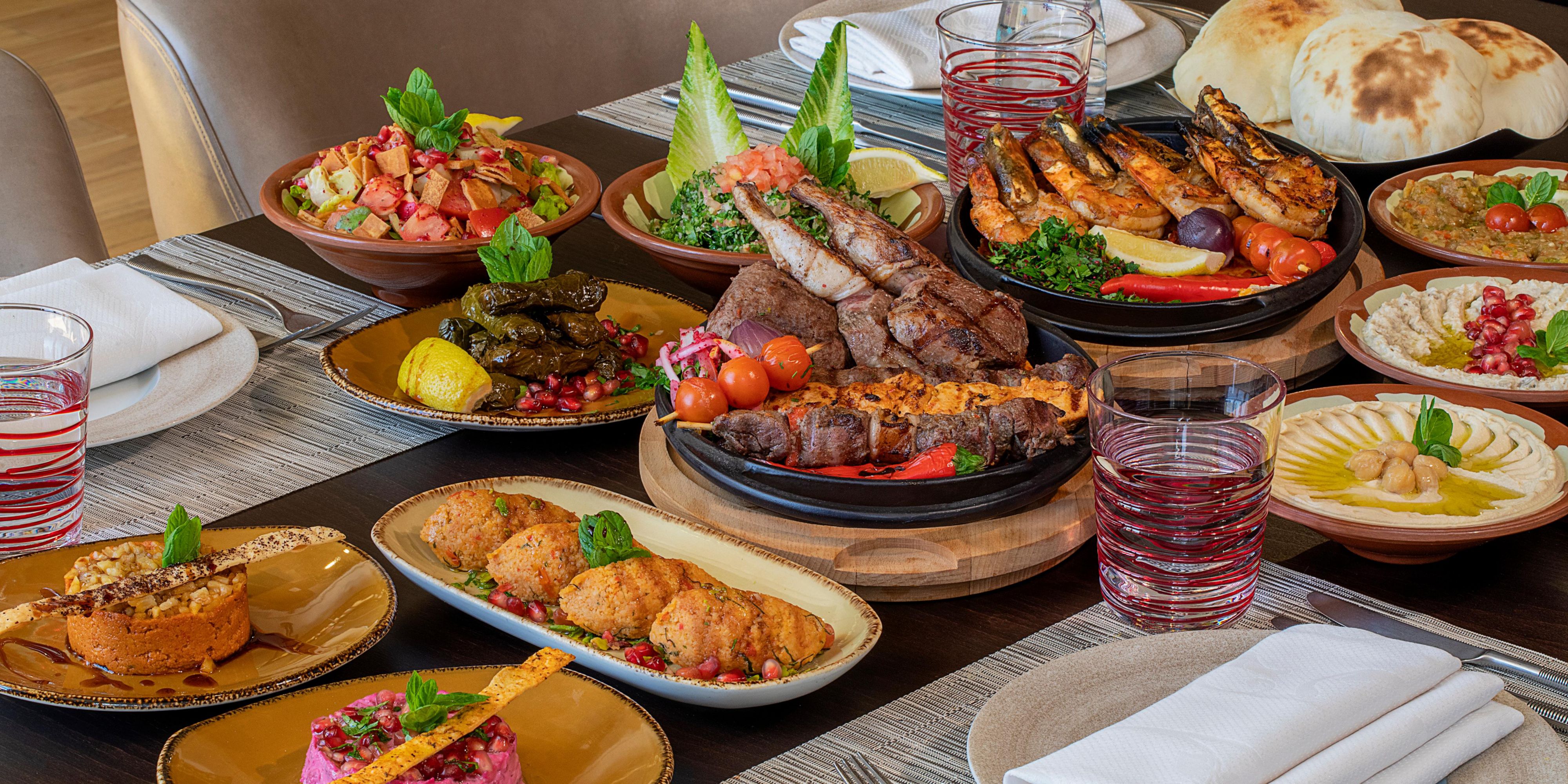 يقدم نايا أفضل ما في الطبخ الشرق أوسطي مع مجموعة مغرية من الأطباق الفاخرة. يوصي الطهاة المبدعون لدينا بلحوم لبنانية تقليدية أو كباب لحم الضأن ، ومشاوي نايا المتنوعة المميزة مع اختيار اللحوم المطبوخة ببطء ، وكلها مصحوبة بأرز معطر. تقدم معجنات أم علي والمفروكة المغطاة بالتمر واللوز خاتمة مثالية لوجبتك ، إلى جانب مجموعة مختارة من عصائر الفاكهة والموكتيلات الحلوة ، بالإضافة إلى أنواع الشاي المميزة والكؤوس الصغيرة من القهوة التركية