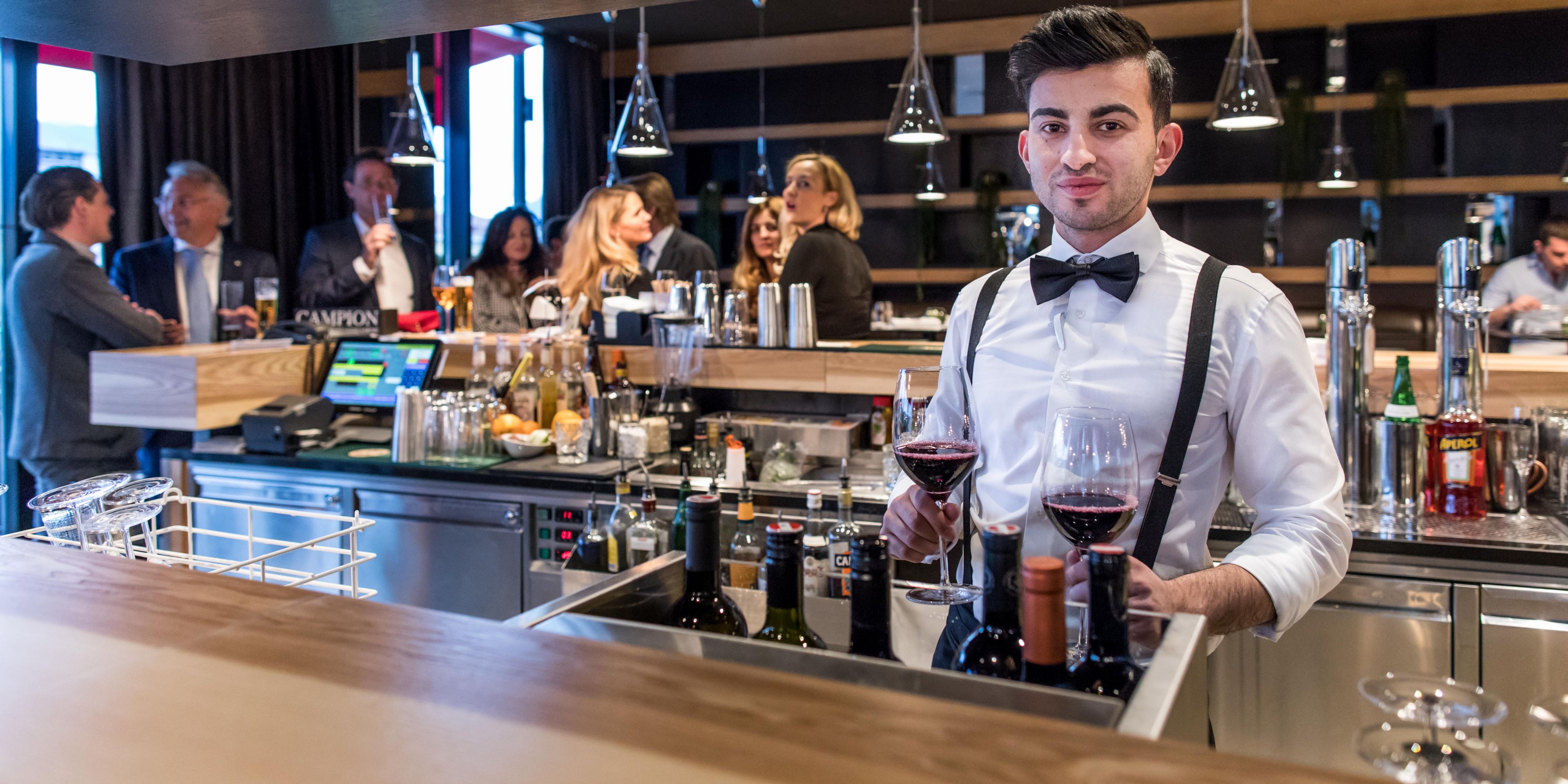 "يحتوي بار LAGANA المتطور على نوافذ تطل على Drau وتراس بجانب الماء لقضاء الأمسيات المعتدلة. يمكنك تجربة مجموعتنا الرائعة من المشروبات المصنوعة يدويًا في كوكتيلات مصنوعة يدويًا ، أو الاختيار من بين النبيذ الكلاسيكي المخزن في درجة حرارة مثالية في الجدار الزجاجي الرائع في منتصف البار. نحن نقدم الوجبات الخفيفة طوال اليوم ، جنبًا إلى جنب مع الأطباق التي أعدها الطاهي توماس مايرل الحائز على جوائز.