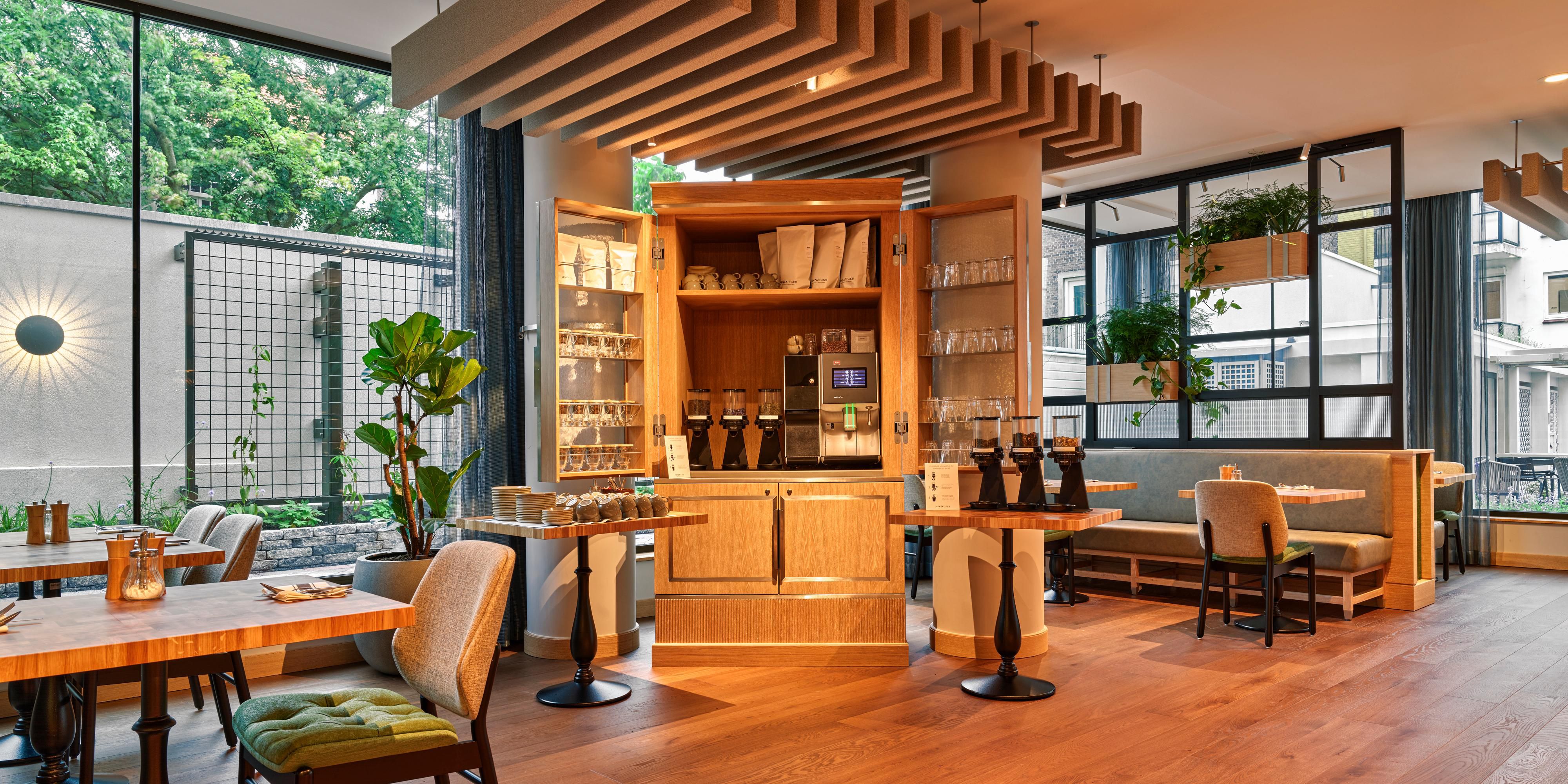 Desfrute de um oásis culinário no coração de Haia. Descubra drinques inspirados nas explorações marinhas holandesas no Ultramarijn Wonderbar ou desfrute do terraço com jardim no Botanica Kitchen & Bar. O serviço de quarto está disponível 24 horas por dia.