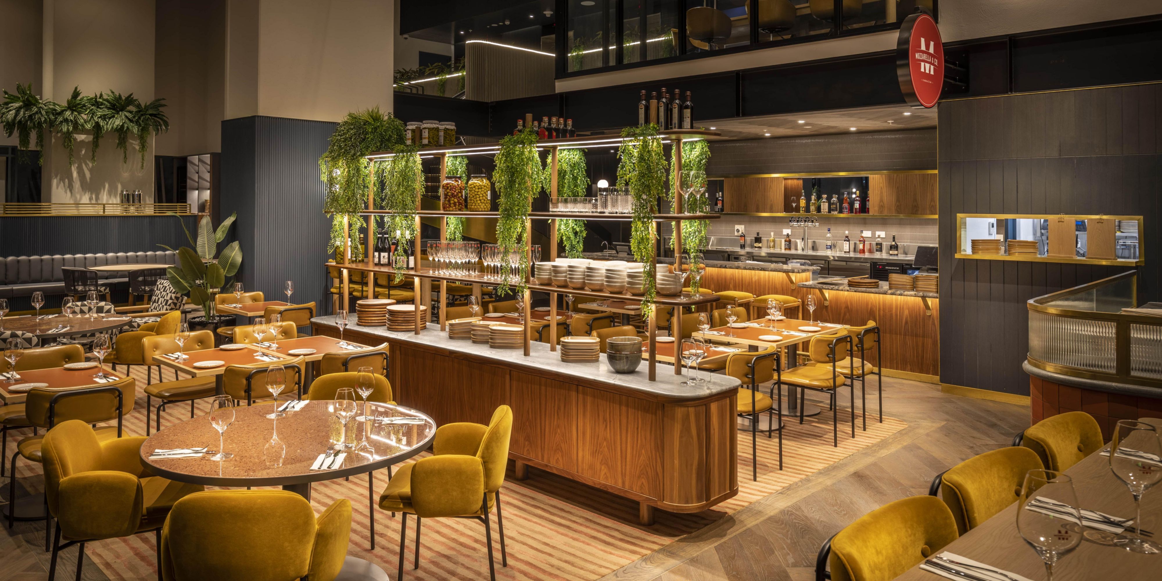 At our all day trattoria Mozzarella and Co., enjoy a delicious array of Italian classics including wood fired pizza and pasta. In the morning, both an a la carte and takeaway breakfast menu is available along with expertly brewed barista coffee.