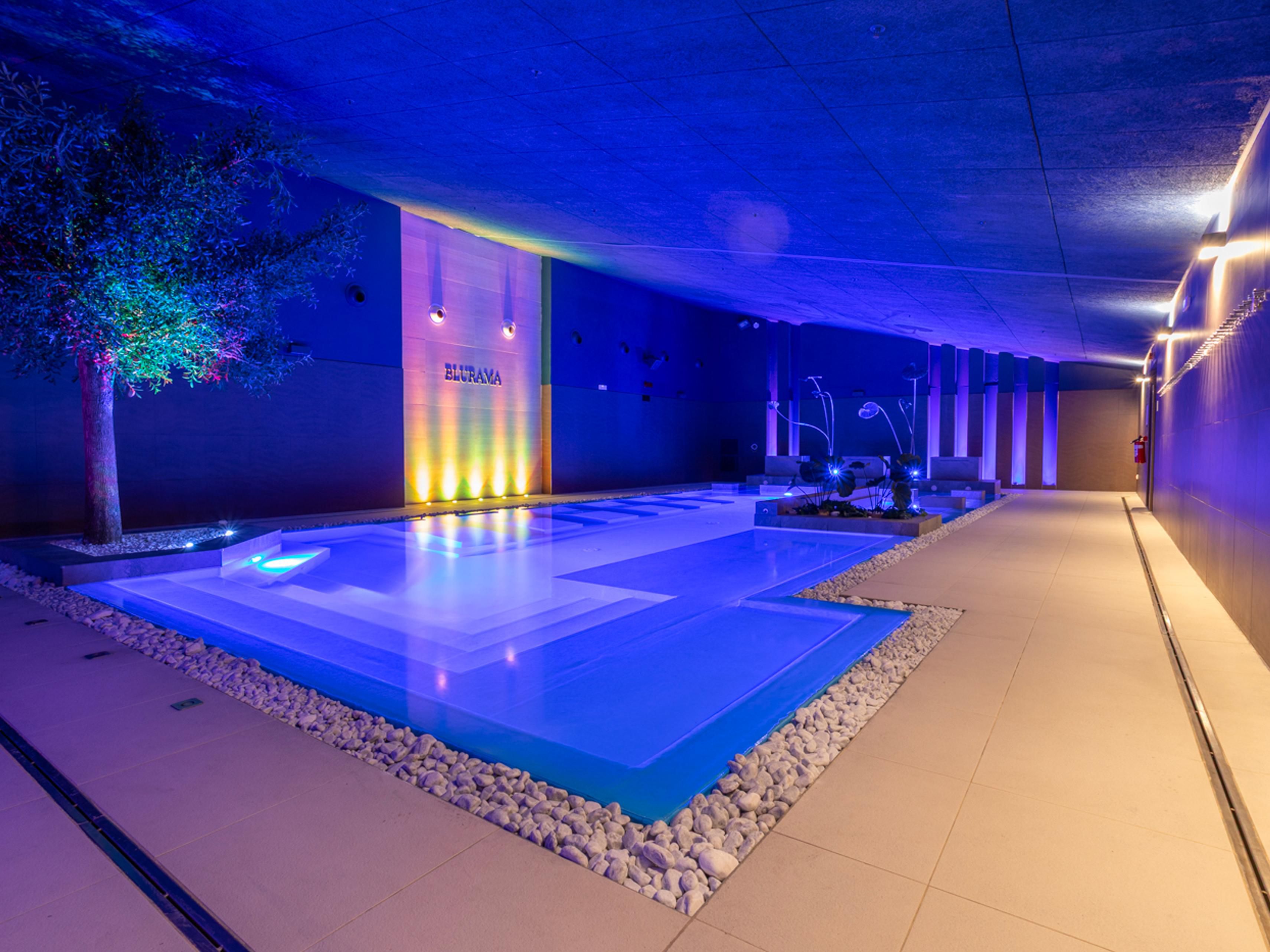Recharge at BLURAMA Spa, an 1,800 m² sanctuary with seven treatment rooms, sauna, Turkish bath, emotional showers, ice experience, Jacuzzi, and hydro/waterfall pool — designed to restore energy and harmony.