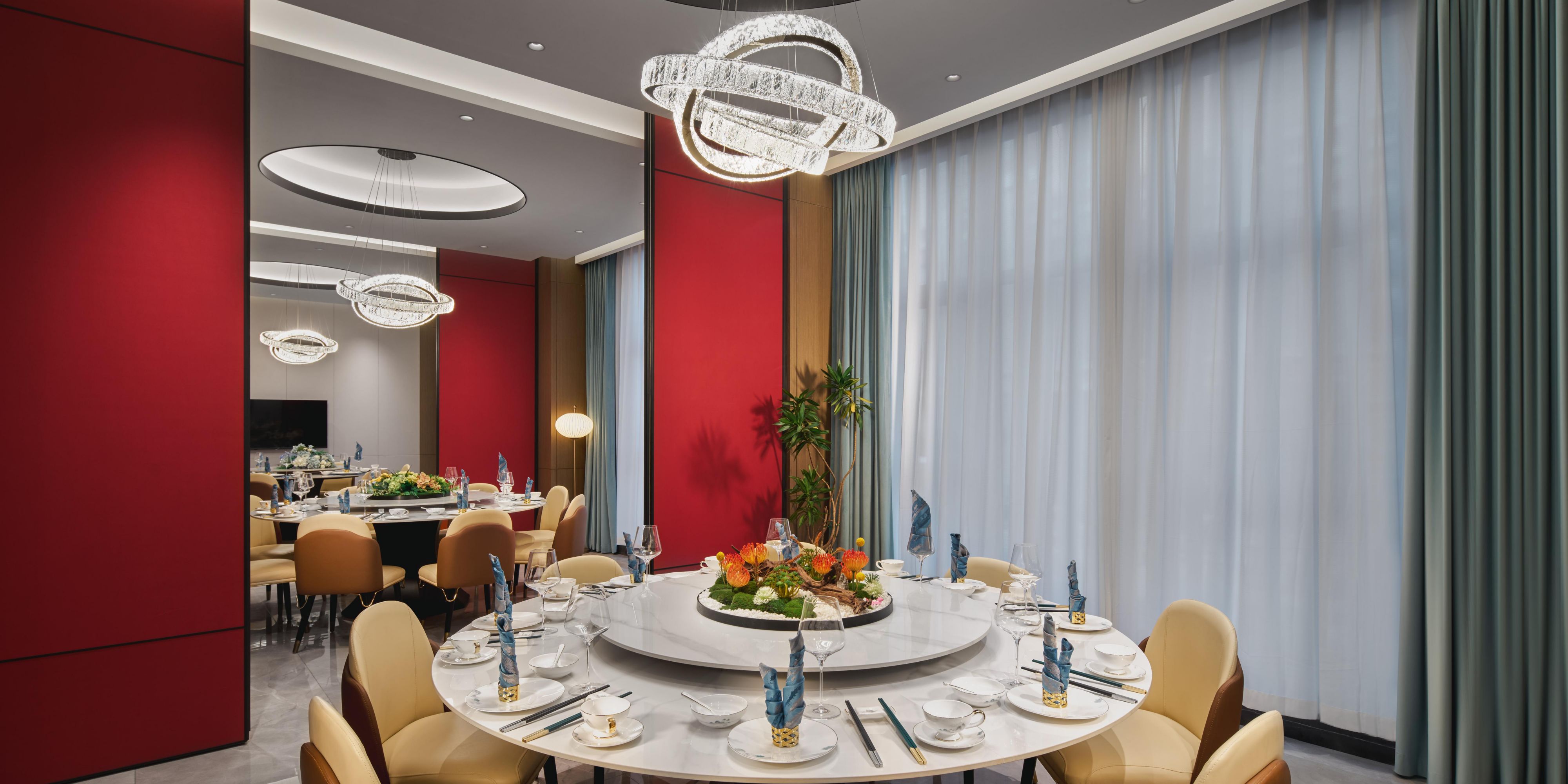The Chinese restaurant combines Shaanxi and Cantonese cuisines with creative fusion dishes. The Western restaurant offers a rich buffet, and the lobby bar serves delicate refreshments and beverages, catering to diverse tastes.