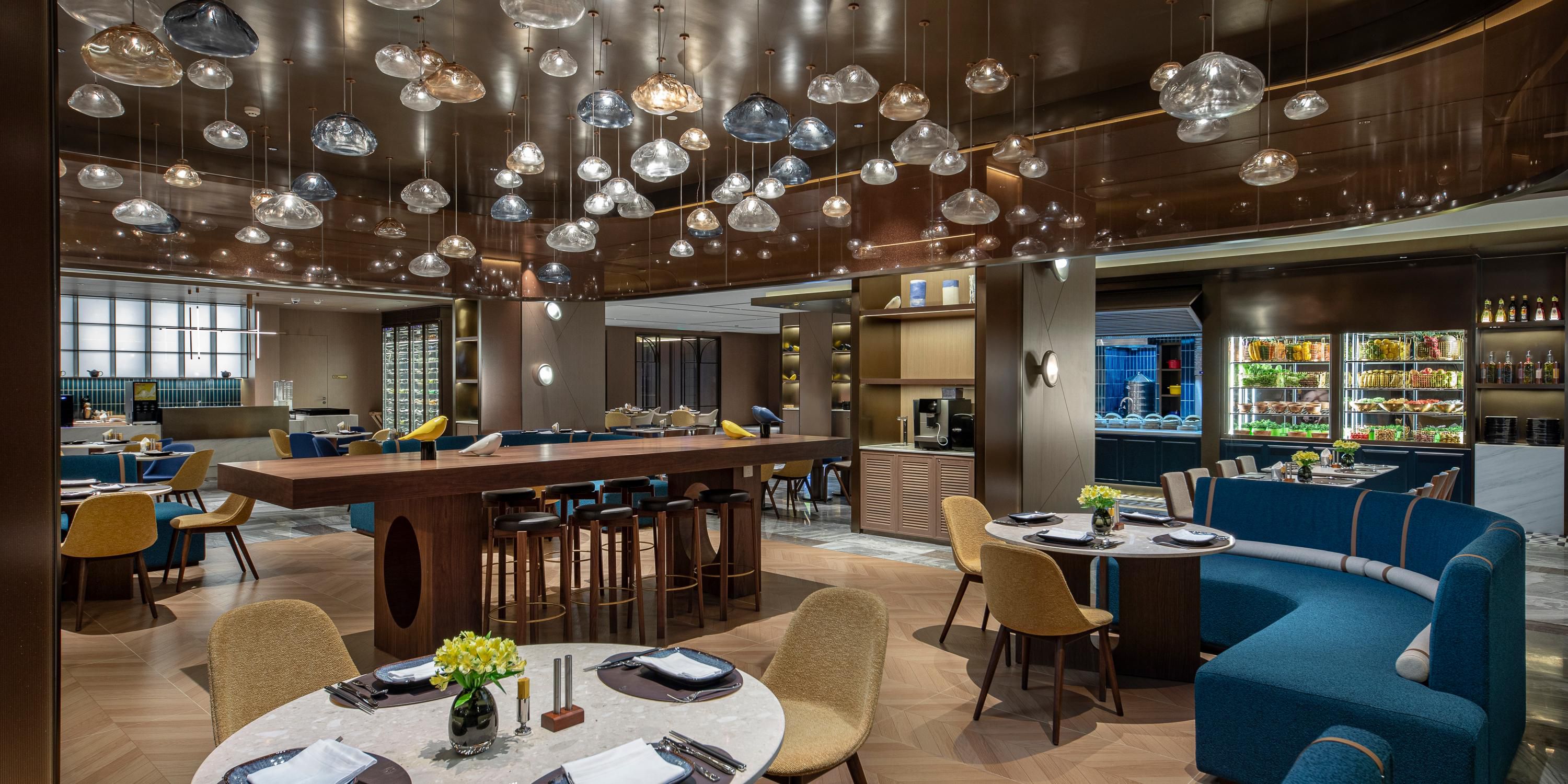 V 키친은 전통적인 레스토랑과 달리 중식과 서양식 다이닝 경험 통합하여 뷔페, 올데이 다이닝 일품요리 및 선데이 브런치를 제공합니다.