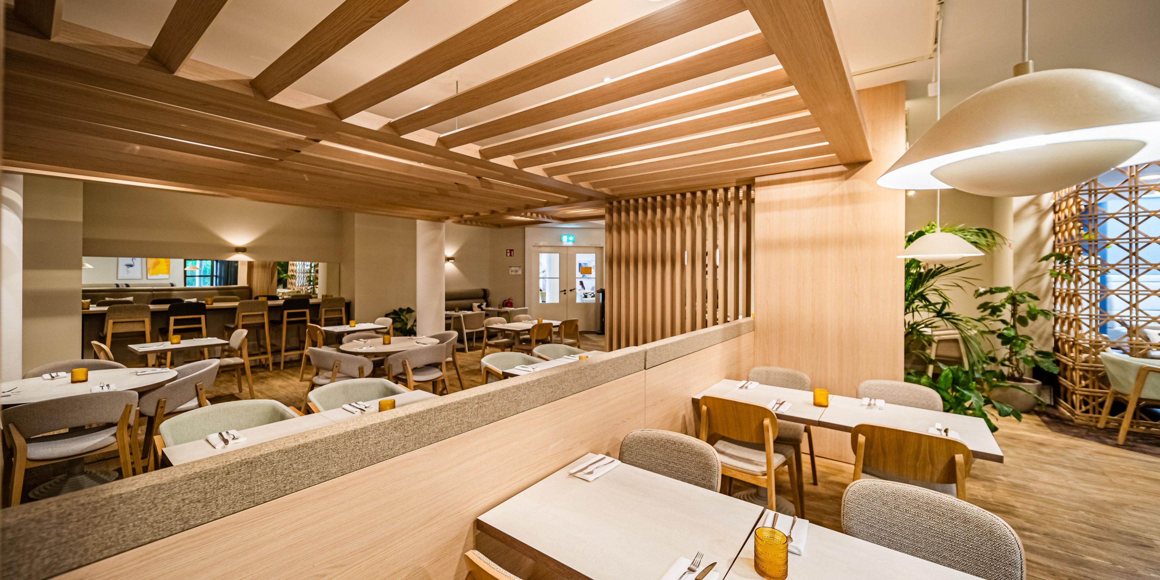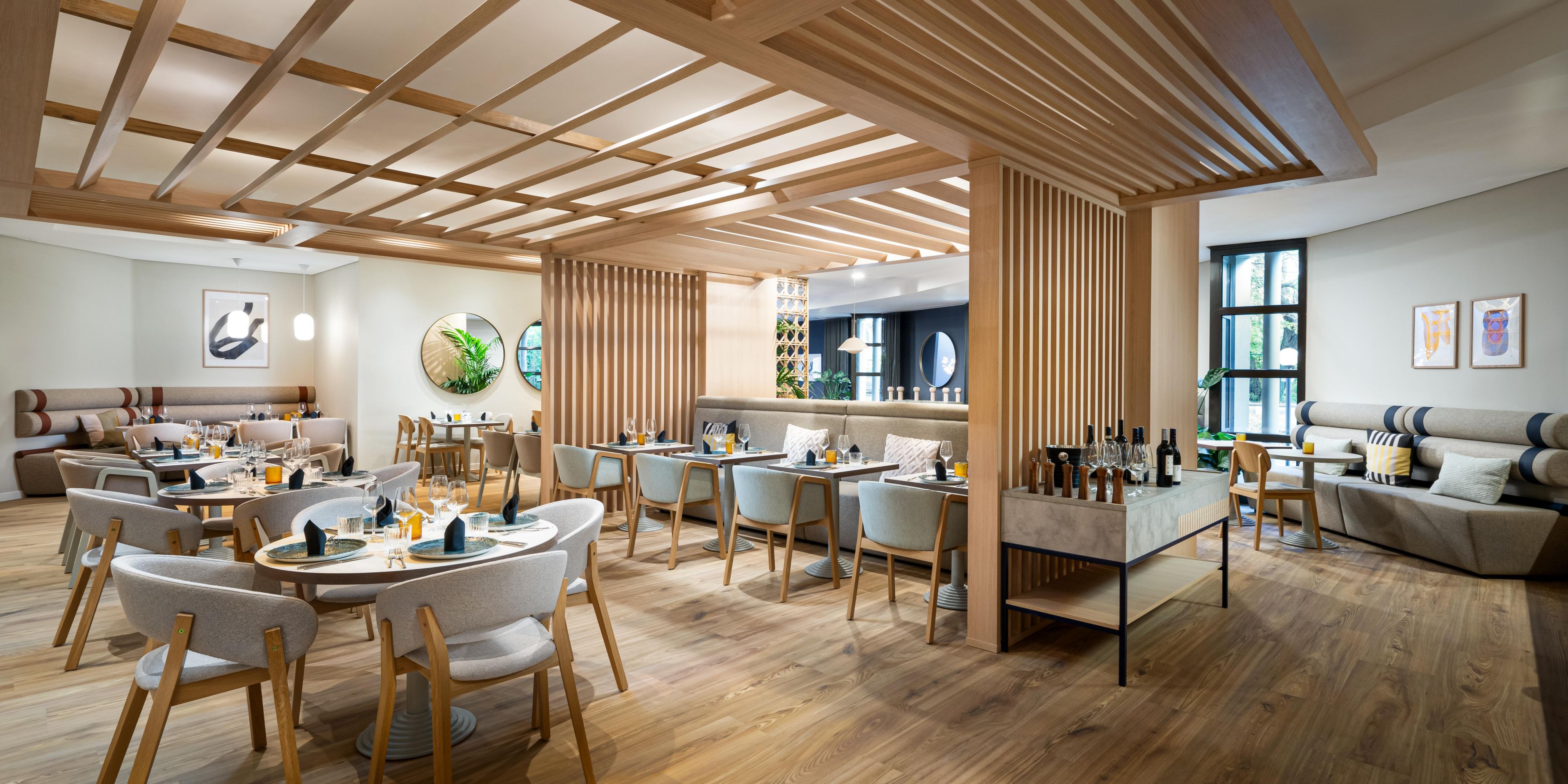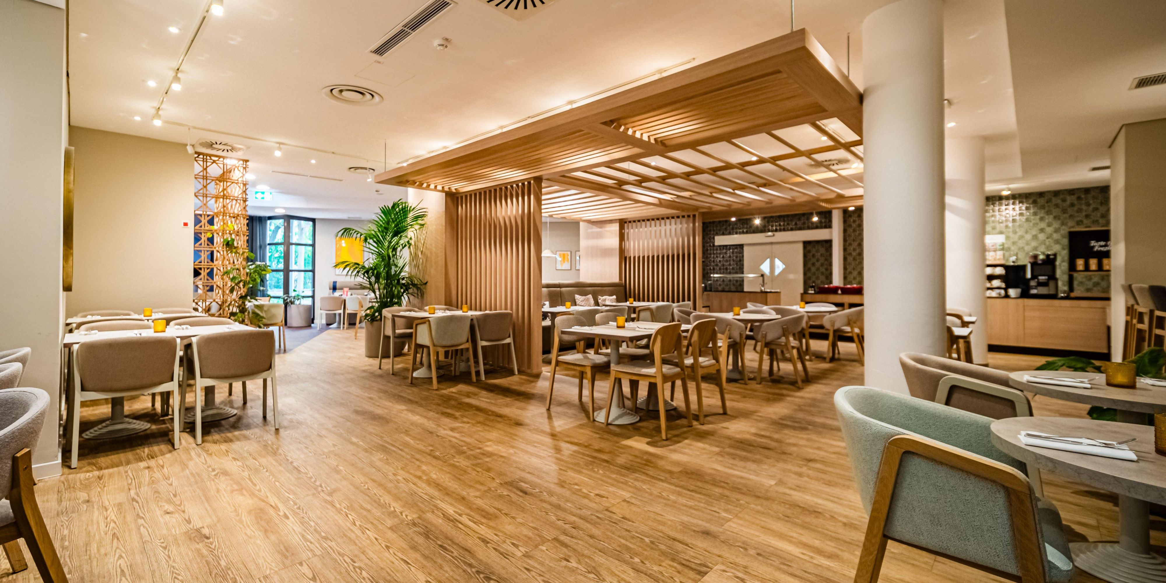 The Vienna Vibes at voco Vienna Prater with its panoramic windows stands out from the lobby area, subtle, but at first sight. The design language in warm natural colours and high quality materials, however, continues until it changes to darker hues in the lounge and bar. For breakfast, business lunch and dinner, Vienna Vibes becomes a meeting point, a renowned location to get together. Regional dishes such as classics like Schnitzel are refined with an international touch.
