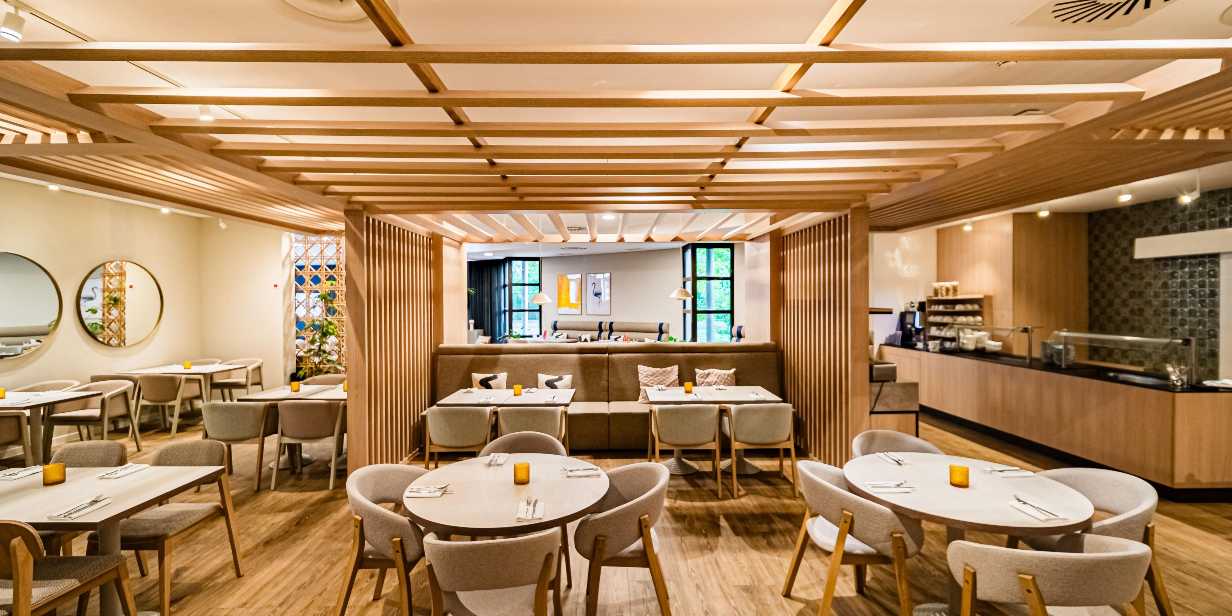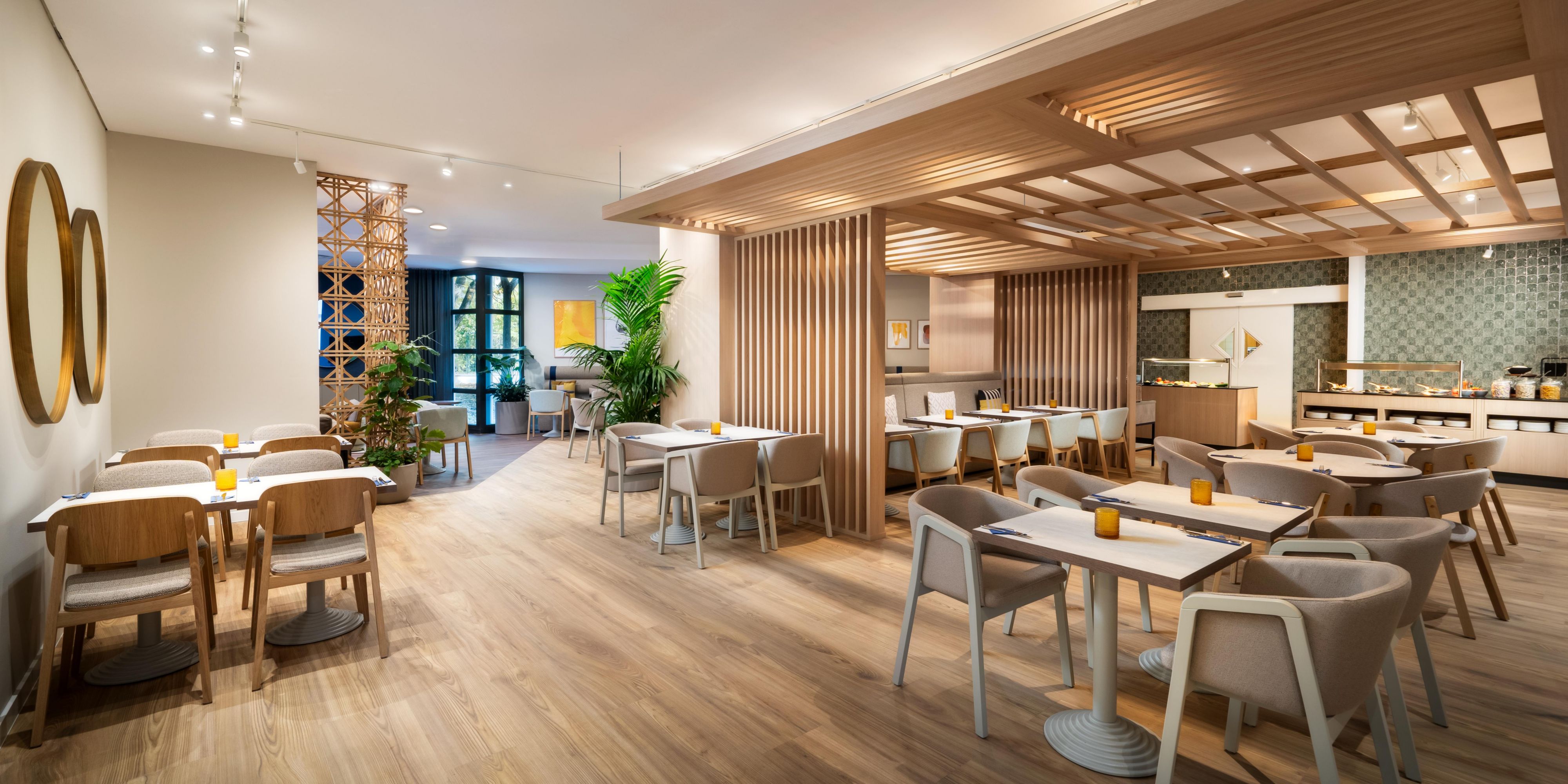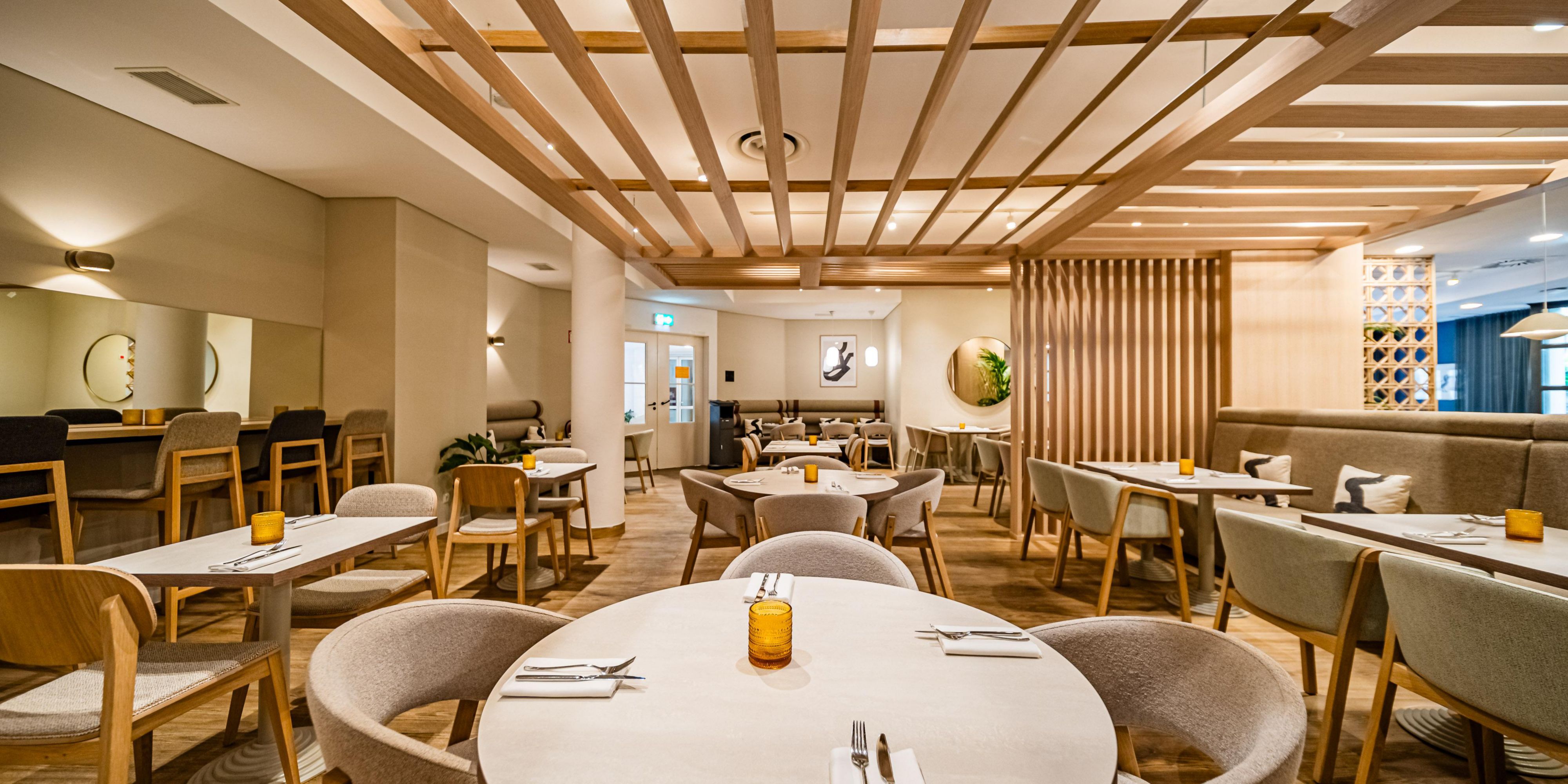 The Vienna Vibes at voco Vienna Prater with its panoramic windows stands out from the lobby area, subtle, but at first sight. The design language in warm natural colours and high quality materials, however, continues until it changes to darker hues in the lounge and bar. For breakfast, business lunch and dinner, Vienna Vibes becomes a meeting point, a renowned location to get together. Regional dishes such as classics like Schnitzel are refined with an international touch.