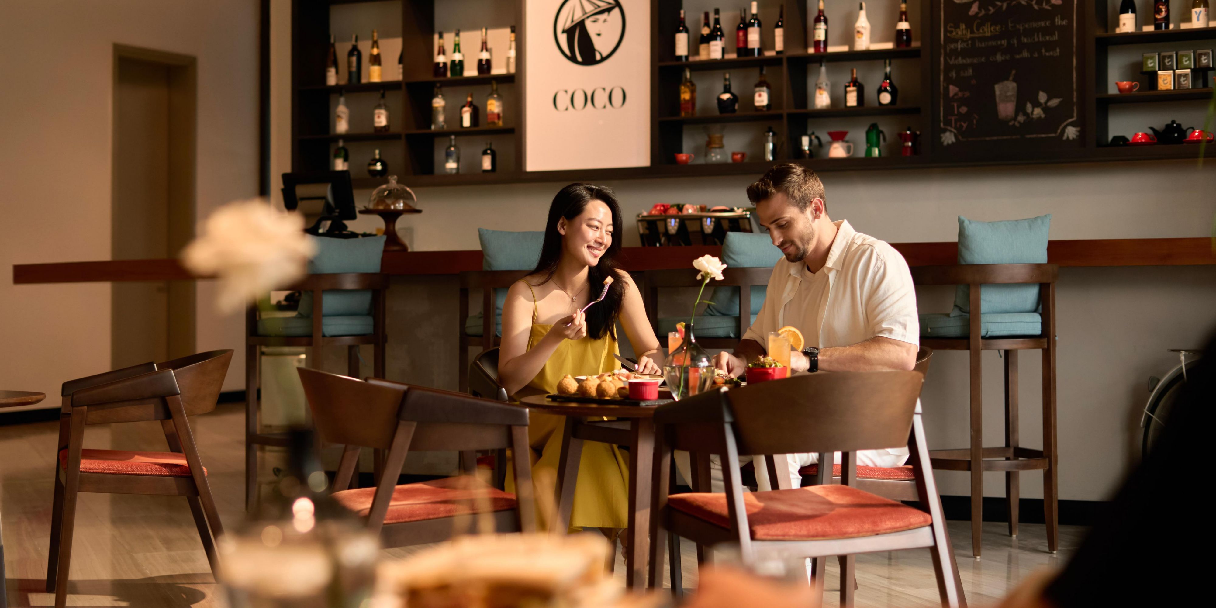 The action happens at Coco, our street level lobby lounge. Get a quick pick me up with one of our specialty coffees, a healthy bite with one of our tasty salads, or satisfy your sweet tooth with one of our indulgent gelatos. Coco vibrant atmosphere and friendly hosts make it the perfect place to hang out with friends or loved ones.