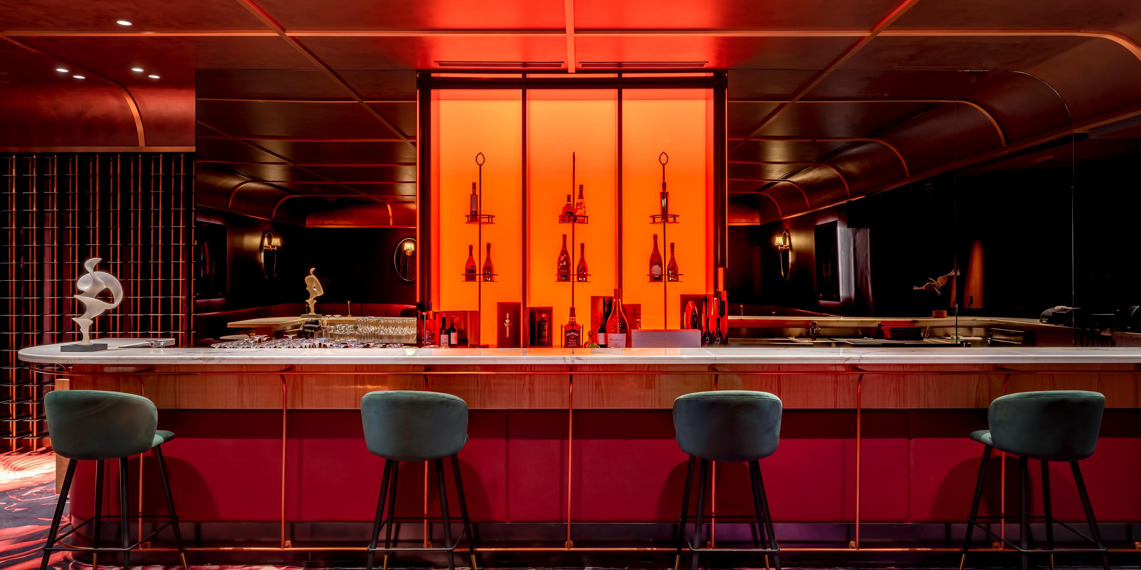 Decadent immersion into the vivant and spectacular nightlife of the French Riviera. Enjoy your sips in an atmosphere of low lighting and candles, club chairs and sofas with cushy pillows, and bold-hued walls. Choose from a selection of small plates to match the essence of the Champagne.