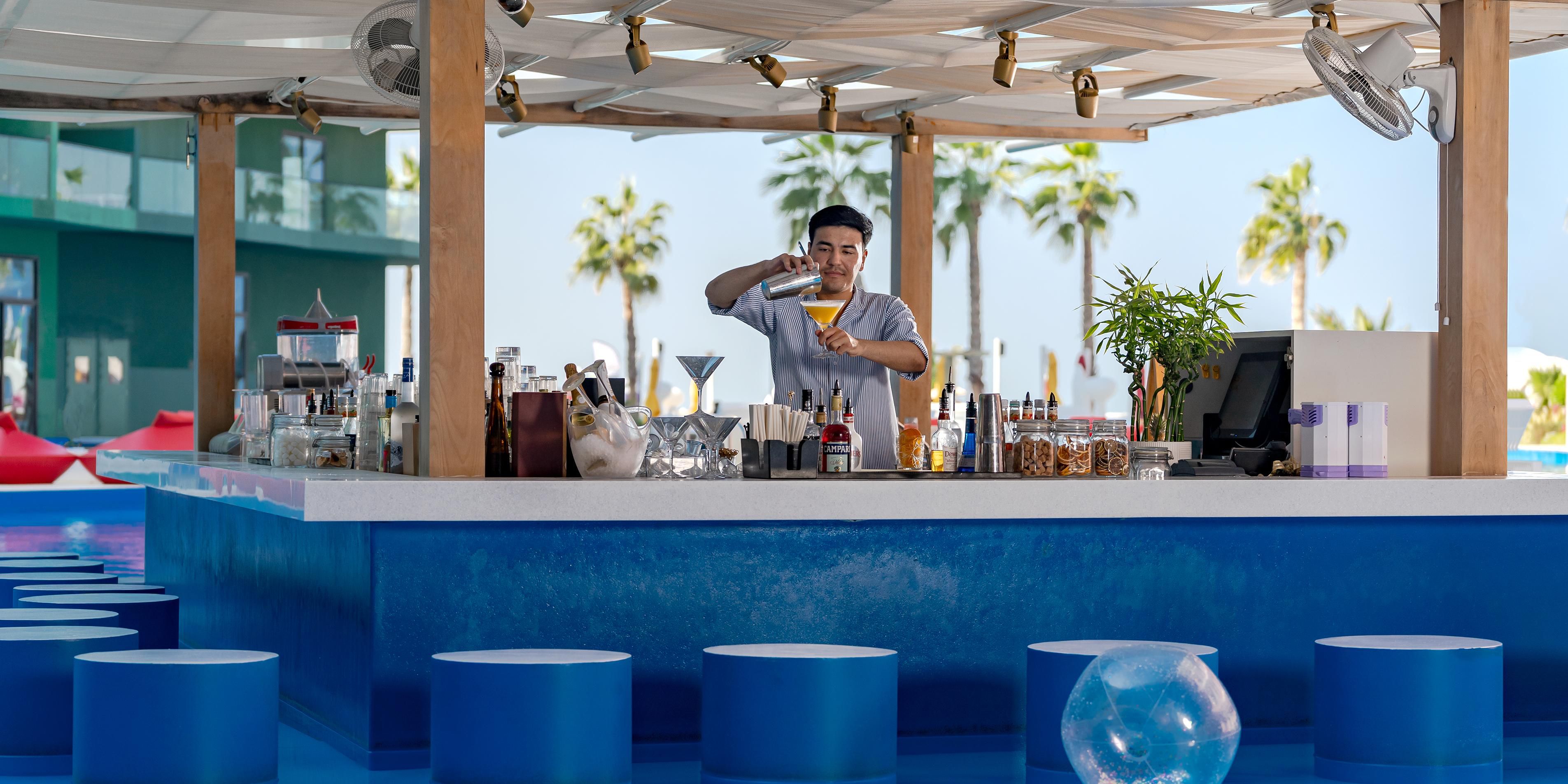 Plunge into the heart of the party at our Lagoon Pool Bar, where the vibe is as lively as the waves. Relax on semi submerged loungers, enjoy a movie on the big screen, and float away on giant inflatables, from unicorns to charming llamas. It is a forever young Monaco fete, with renowned DJs spinning electrifying tunes. As you revel in the ambience, savour menu highlights like flatbreads and oysters. With an extensive drinks menu featuring vibrant cocktails, the celebration continues with zest.