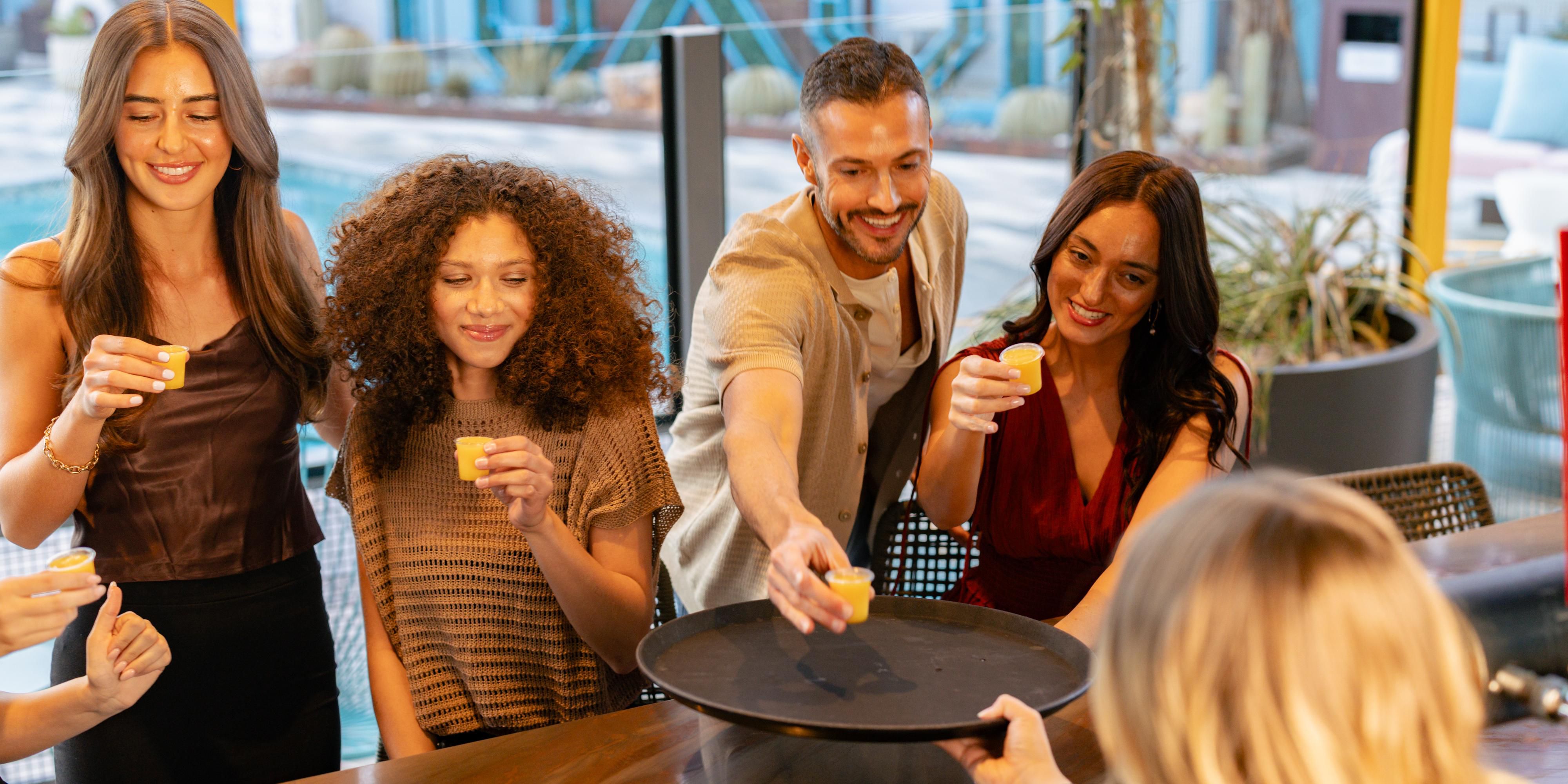 Shady Cactus Swim Club is Tucson's most photogenic poolside bar. We serve chili laced slushies, craft cocktails, and Baja inspired bites from morning through night. Lounge under striped umbrellas, join the daily Shady Toast, and catch golden hour with a cocktail in hand. From coffee and pastries to stacked nachos and weekend DJs, it is equal parts retro motor lodge and desert cool. Come solo, leave with pool friends.