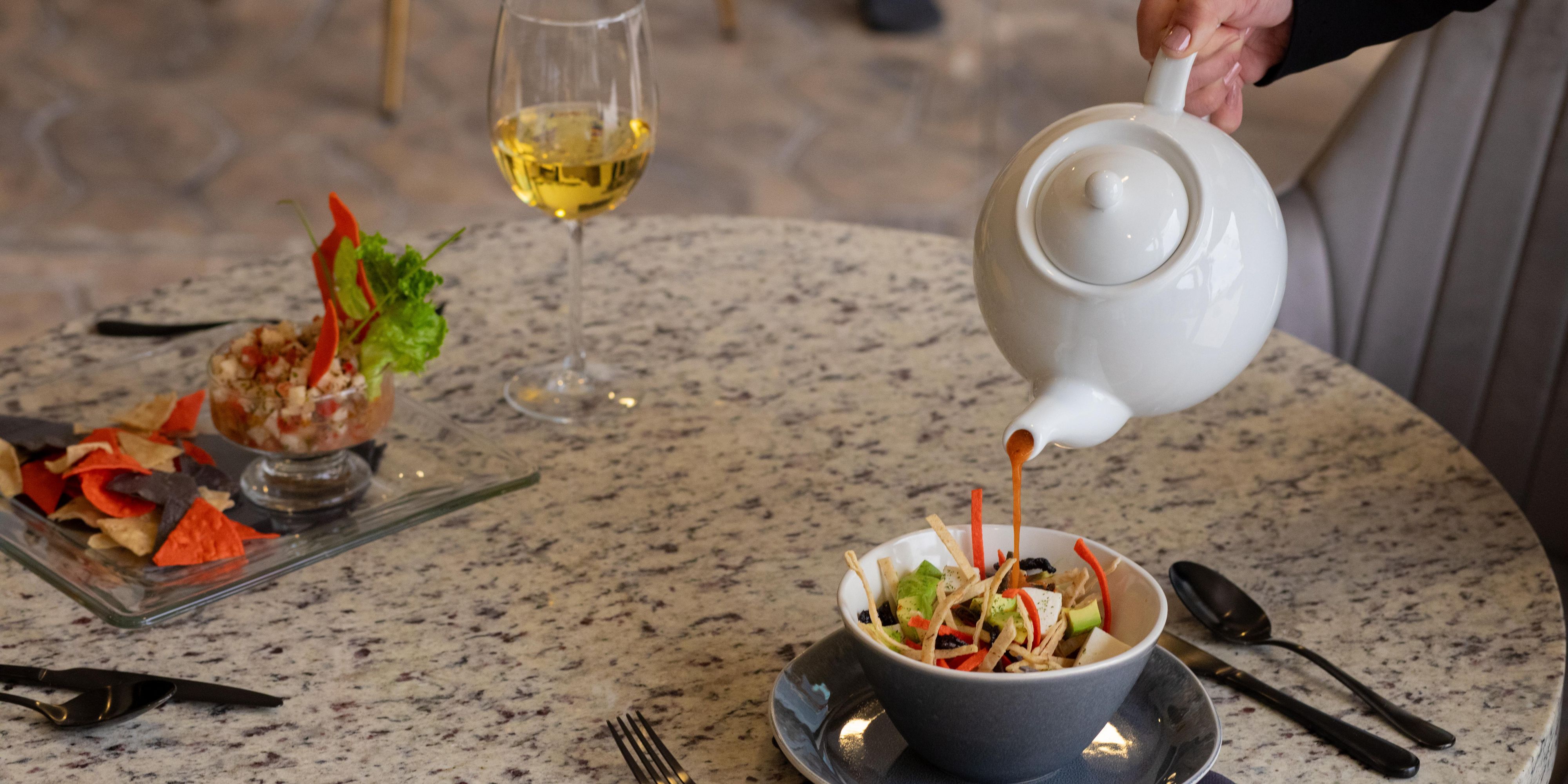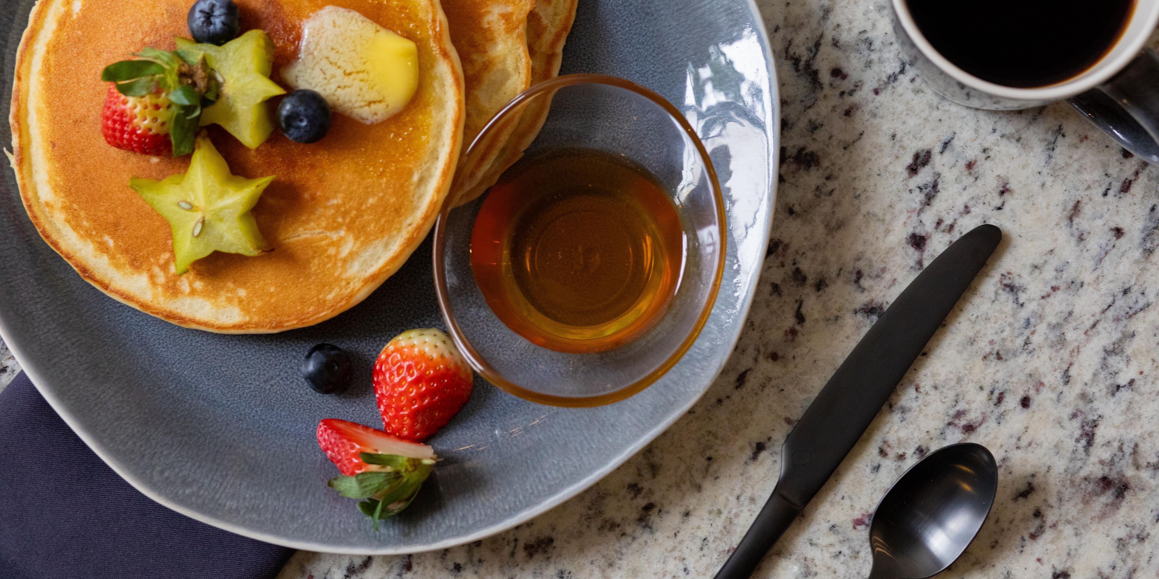 Comienza tu día con un delicioso desayuno buffet y disfruta de jugo fresco y café recién hecho. Para la comida y cena, nuestro menú cuenta con una variedad de clásicos de la cocina continental, que incluyen ensaladas frescas, sopas y sándwiches; o elige entre una selección diversa de platillos principales, como mariscos, filetes y pollo. Disfruta de los sabores de nuestros platillos cuidadosamente elaborados. Te aseguramos una experiencia gastronómica tan diversa como encantadora.